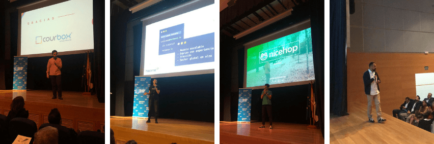 El primero en presentar fue Antonio Cardenal, CEO de la startup Courbox, una plataforma online cuyo objetivo es ayudar a los estudiantes de Bachillerato a enfrentarse a sus exámenes con vídeos de 10 minutos. Estas clases particulares online les permiten estudiar y repasar los contenidos a su ritmo.