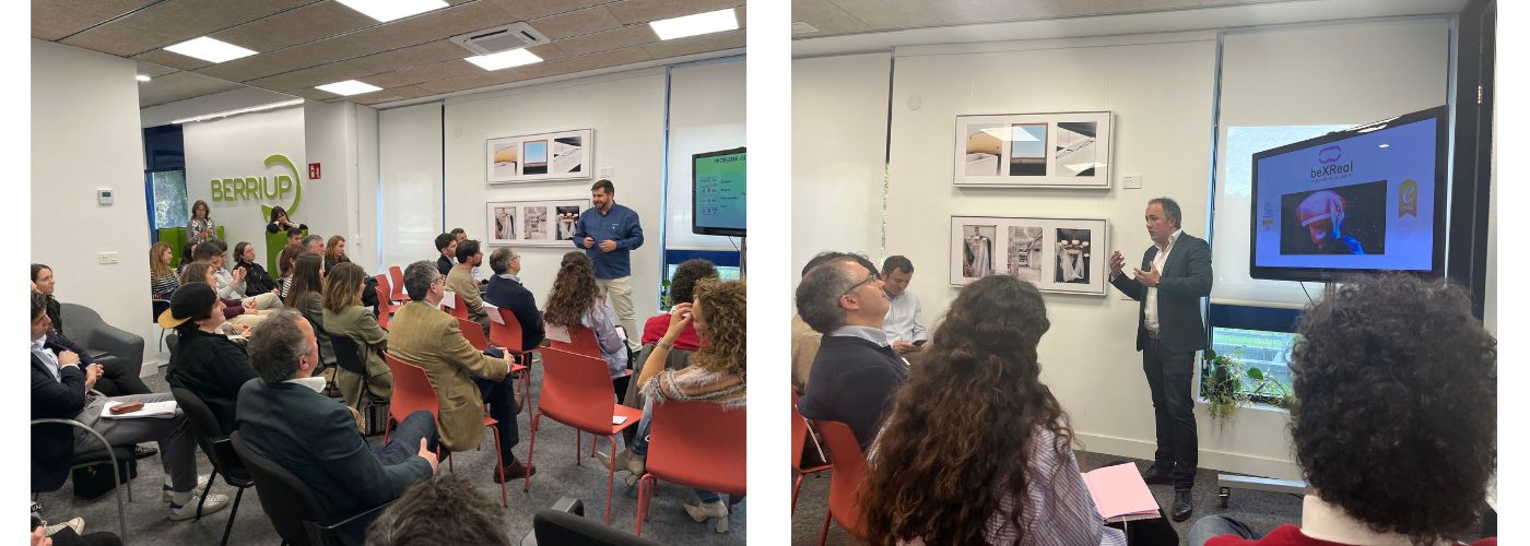 Tras estas intervenciones, dio lugar el inicio de las presentaciones de las startups seleccionadas ante los miembros del jurado y el resto del público asistente. La primera en hacerlo fue Alvearium, plataforma donde el usuario puede disfrutar de manera inmersiva (VR/AR) de actividades cotidianas (compra, turismo, entretenimiento, …). Después, fue el turno de BexReal, startup que aprovecha el potencial gráfico que brindan los entornos de videojuegos y lo traslada al sector industrial desarrollando aplicaciones y contenidos para procesos de autoaprendizaje y mantenimiento en remoto.